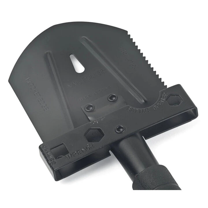 The head of the survivor shovel can be used for half of those purposes. The tip of the hilt includes a durable compass that can be screwed off. Inside the handle is a small box that contains the rest of the products. The handle has enough space for you to add other survival gear as well, such as matches, mini-tools, more nails, etc.