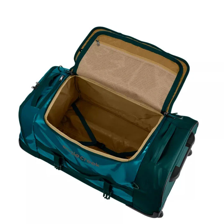 Boasting insane levels of durability, the Eagle Creek® Cargo Hauler XT 90 Liter is travel-ready functionality. You can carry it like a backpack, wheel it around town, or hoist it up by its padded top haul handles for ultimate travel flexibility. This massive rugged duffel keeps gear protected and dry even in the harshest of conditions with its ultra-durable water repellent fabrics.