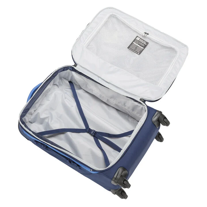 The Expanse™ 4-Wheel 60 Liter features rugged multi-directional wheels and a heavy-duty wheel housing. Expansion zipper for added storage, interior compression straps and zippered mesh door panel pocket help make staying organized easy even when you overpack. Its durable and bluesign® approved 100% recycled poly ripstop construction makes this bag is as good for you as it is the planet.
