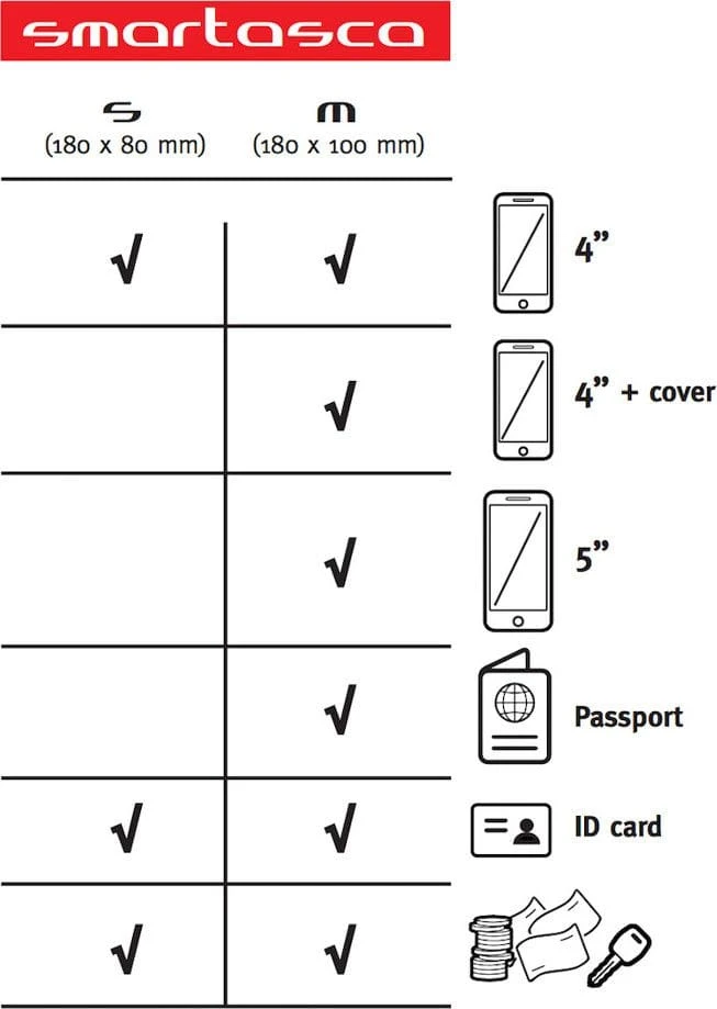 SmarTasca is a practical, sturdy and transparent bag to carry smartphone, ID and some cash during rides.