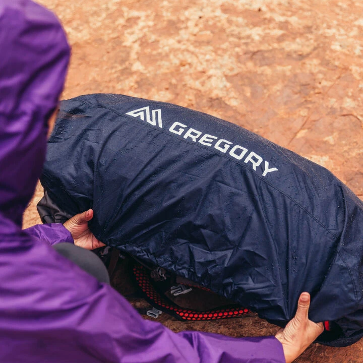 For waterproof protection with a more sustainable approach, Gregory’s® Raincover utilizes recycled polyester ripstop material to provide a durable barrier for your pack from the elements. Reflective logos, secure attachments, and a tidy package allow you to make time for the trail on rainy days.