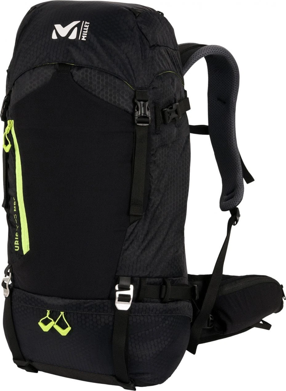 Designed for summer trekking and ski touring, the UBIC 35 MBS backpack has a Mobility Back System swivel belt for more ergonomic carrying. Made from recycled materials, it features a new elastic mesh pocket on the front.