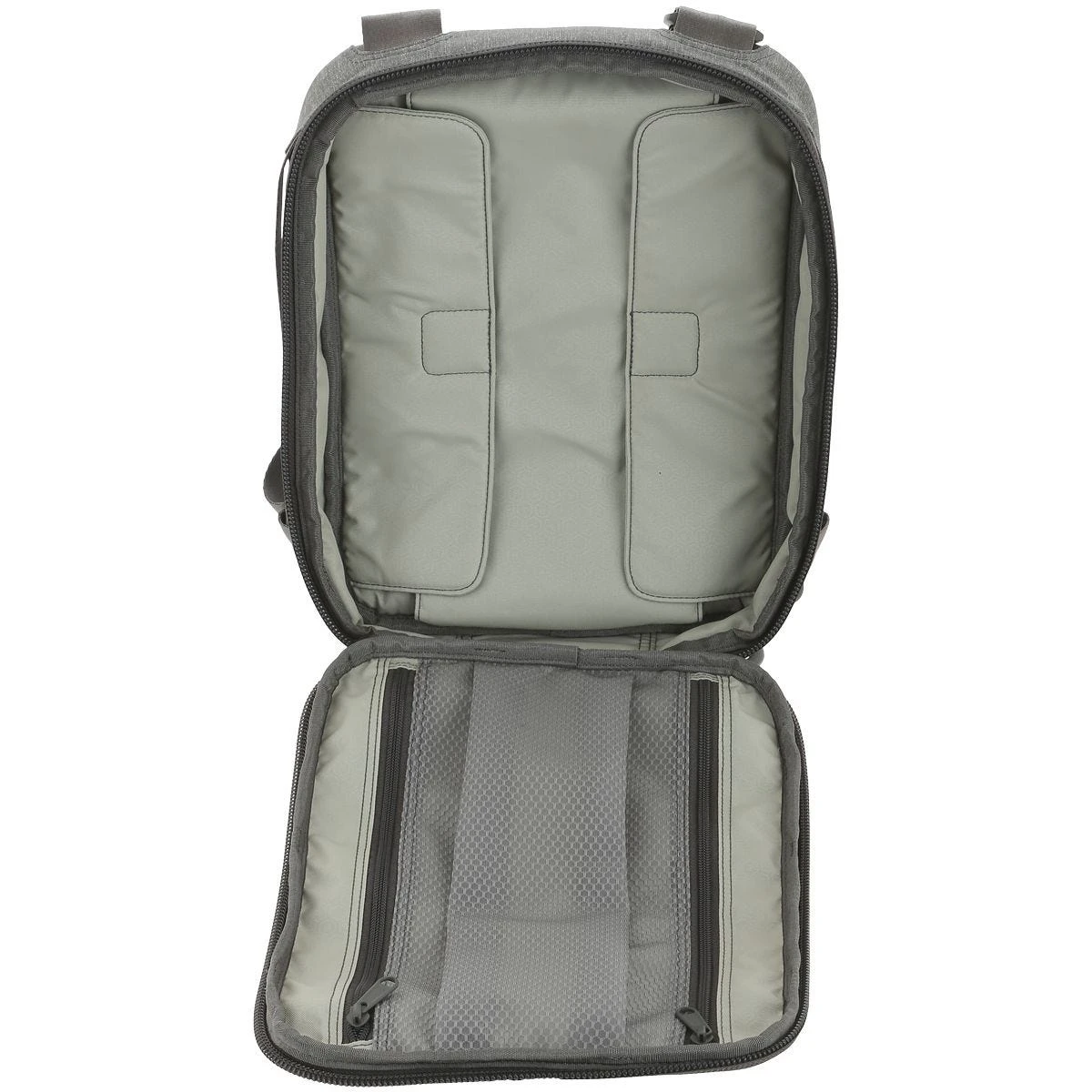 concealable drawbridge straps, zippered mesh pocket and padded