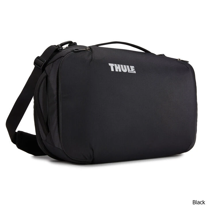 For effortless travel, choose Thule’s® Subterra 40 Liter. It complies with the carry-on requirements for most airlines and features a pass-through panel to secure the bag to your rolling luggage.